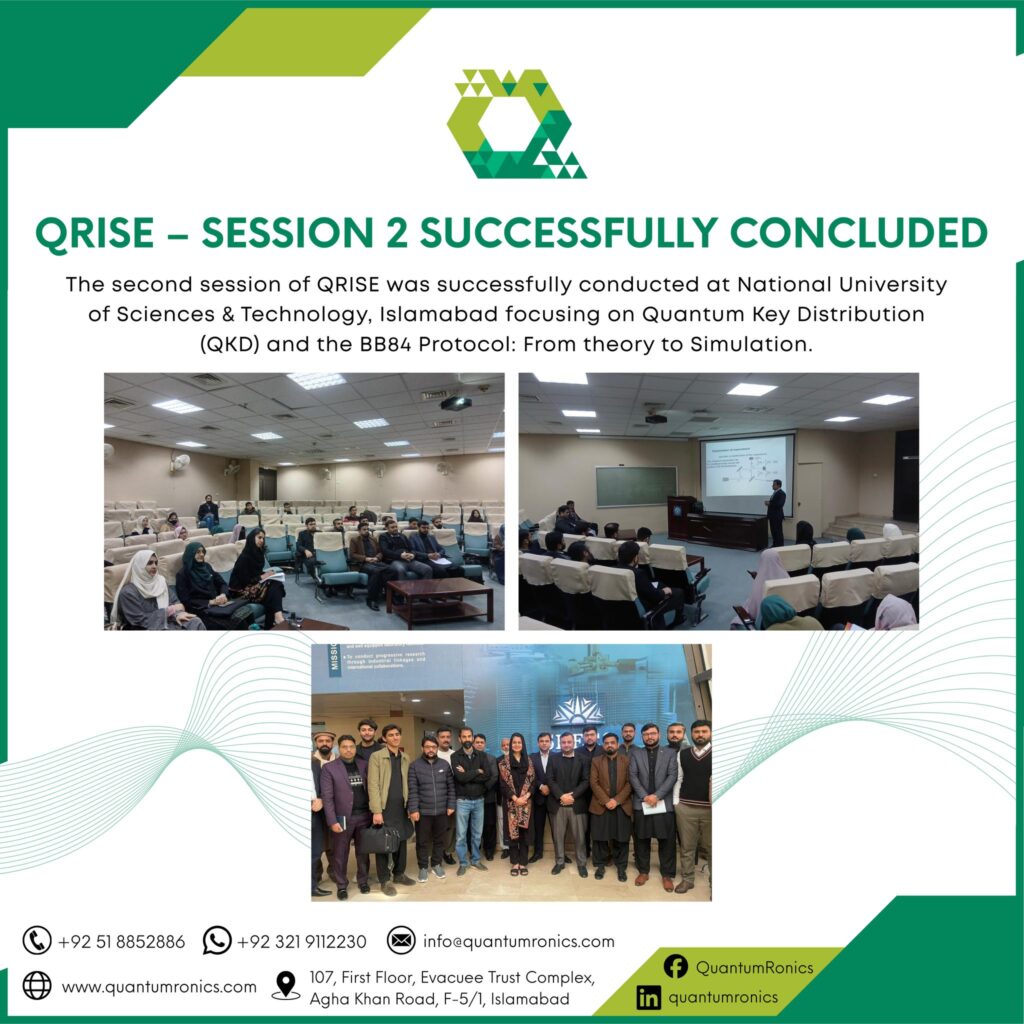 The second session of QRISE was successfully conducted at NUST, focusing on Quantum Key Distribution (QKD) and the BB84 Protocol: From Theory to Simulation.